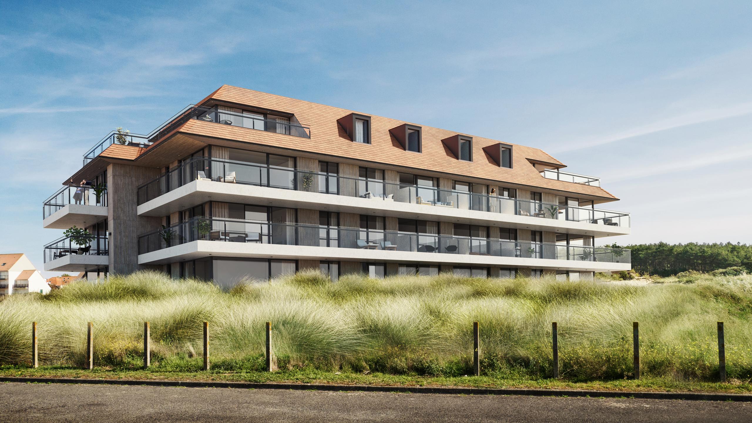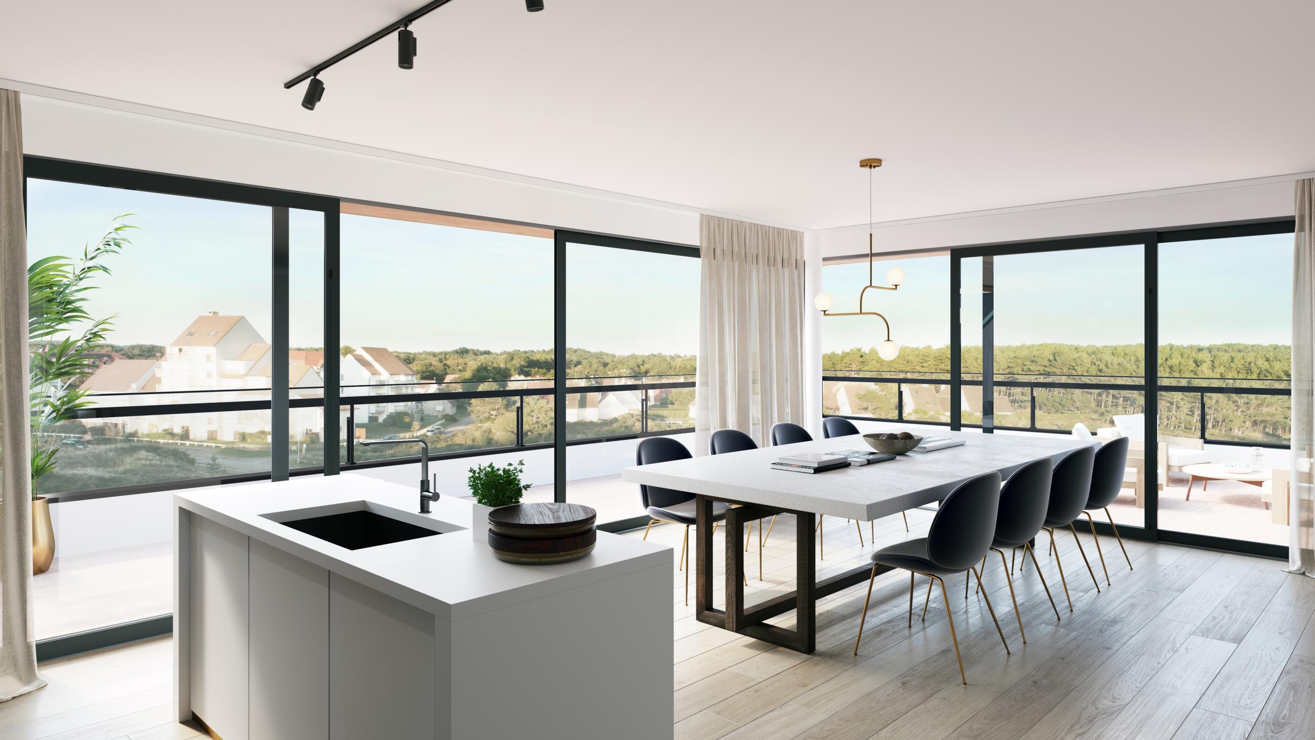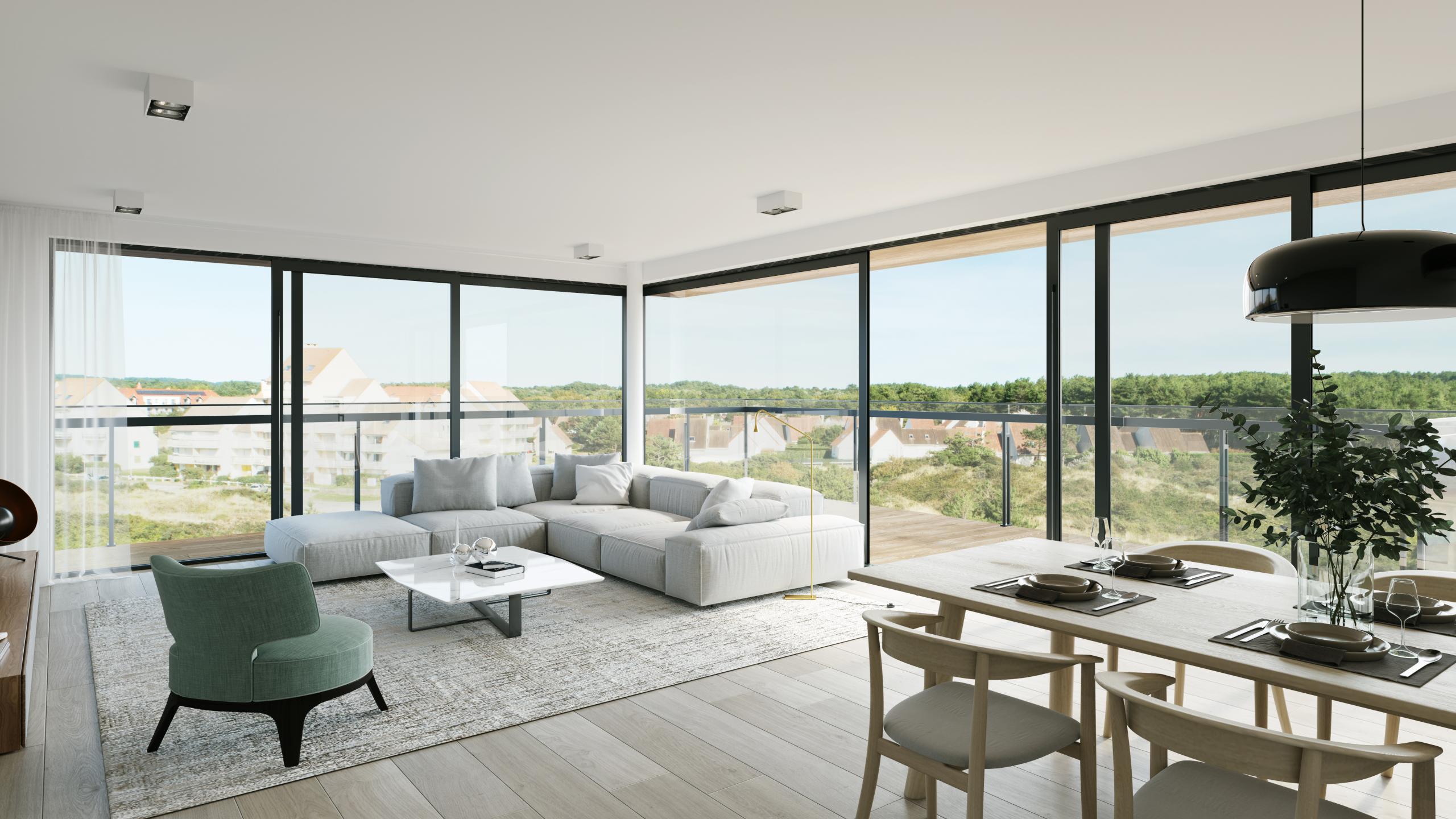 Pour dessiner le projet de Ruban Bleu, la Compagnie Immobilière d’Hardelot a fait appel à Arcas, un bureau d’architecture jouissant d’une belle renommée. Les experts d’Arcas ont dessiné un projet à la fois contemporain et élégant, qui s’inscrit à merveille dans la nature environnante. Ce projet accorde une grande attention aux vues panoramiques sur la beauté d’une région à la fois maritime et verdoyante. La vaste terrasse de l’appartement vous permet d’embrasser du regard toute la nature environnante alors que les grandes baies vitrées laissent pénétrer un océan de lumière à l’intérieur de l’appartement. Quant aux finitions, seuls les meilleurs matériaux ont été utilisés. À ce niveau-là également, le luxe est au rendez-vous.