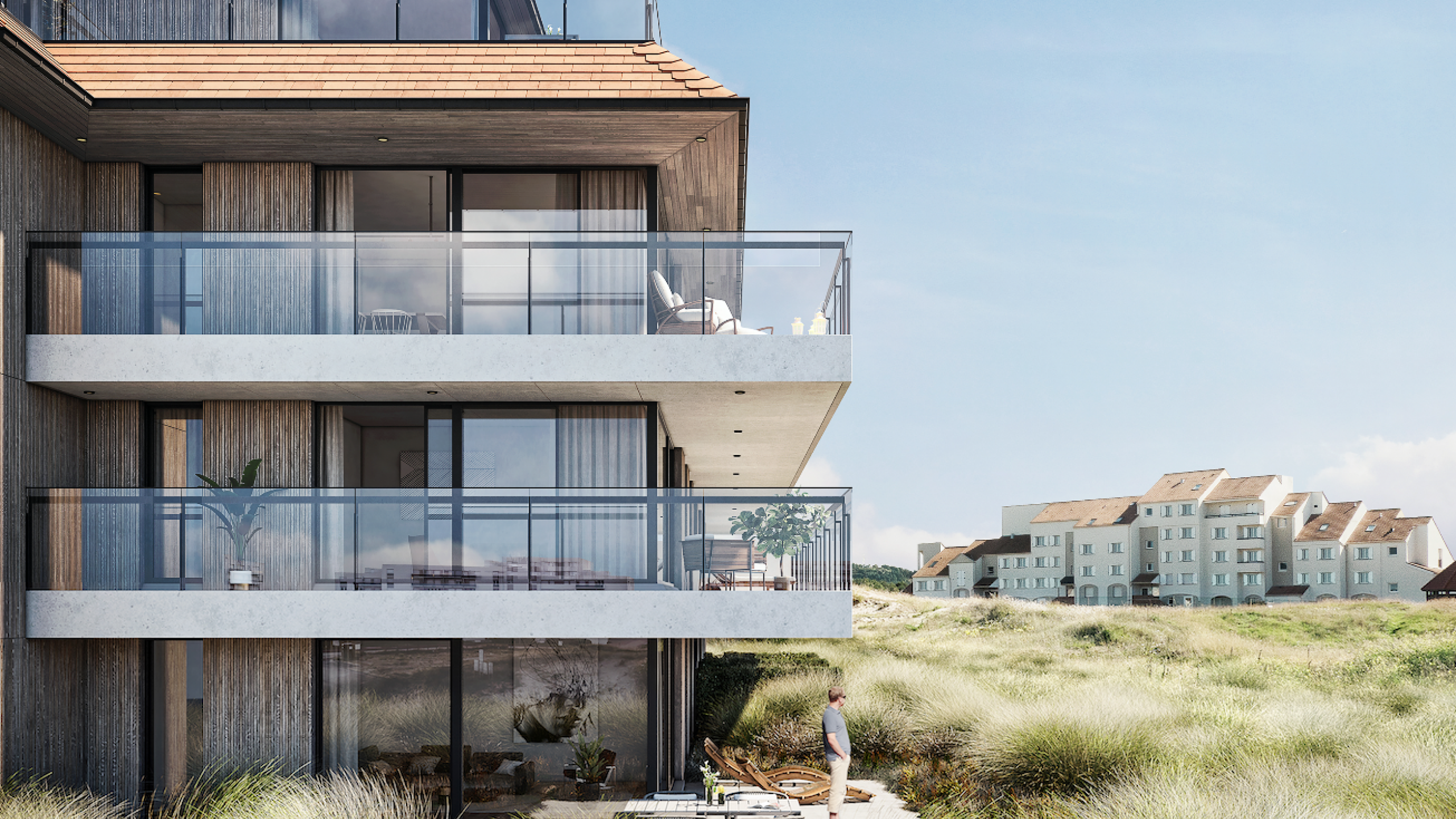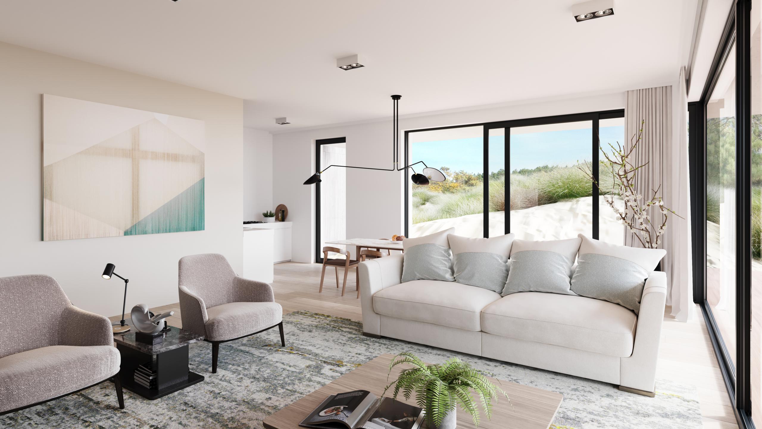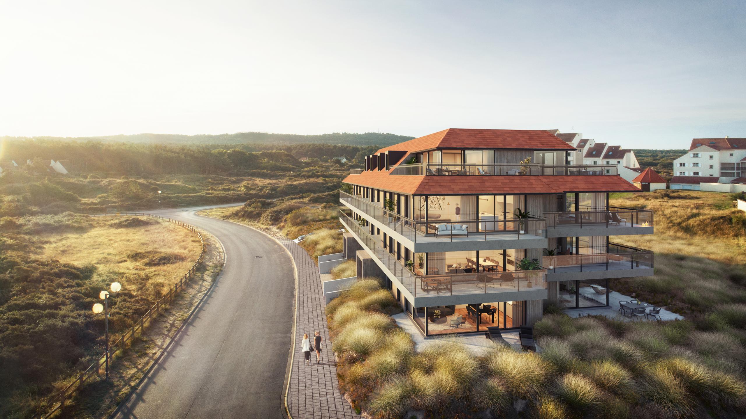 Pour dessiner le projet de Ruban Bleu, la Compagnie Immobilière d’Hardelot a fait appel à Arcas, un bureau d’architecture jouissant d’une belle renommée. Les experts d’Arcas ont dessiné un projet à la fois contemporain et élégant, qui s’inscrit à merveille dans la nature environnante. Ce projet accorde une grande attention aux vues panoramiques sur la beauté d’une région à la fois maritime et verdoyante. La vaste terrasse de l’appartement vous permet d’embrasser du regard toute la nature environnante alors que les grandes baies vitrées laissent pénétrer un océan de lumière à l’intérieur de l’appartement. Quant aux finitions, seuls les meilleurs matériaux ont été utilisés. À ce niveau-là également, le luxe est au rendez-vous.
